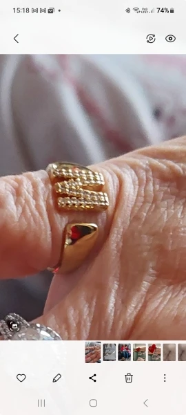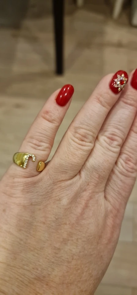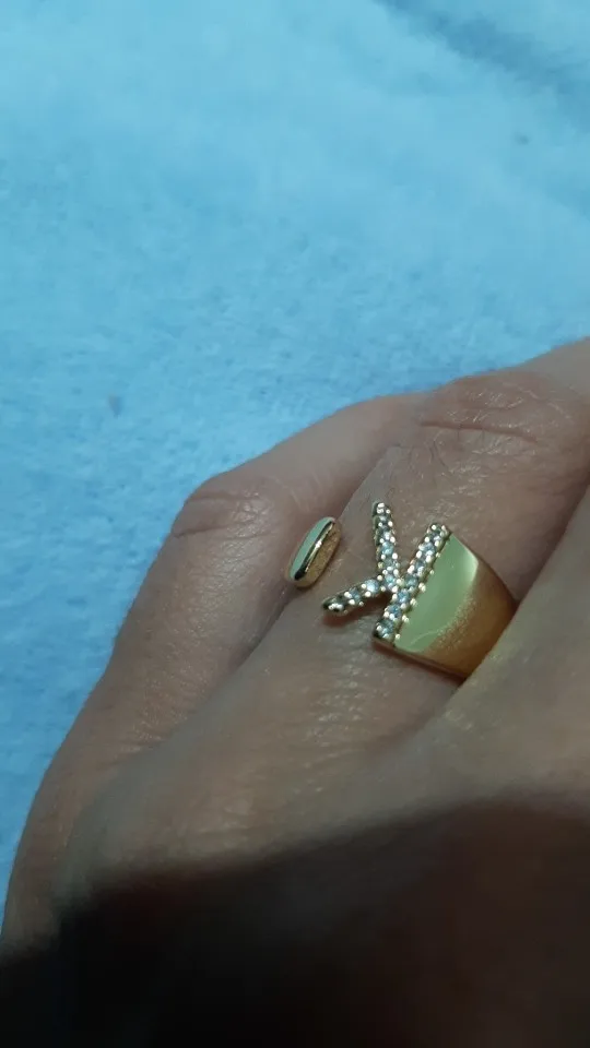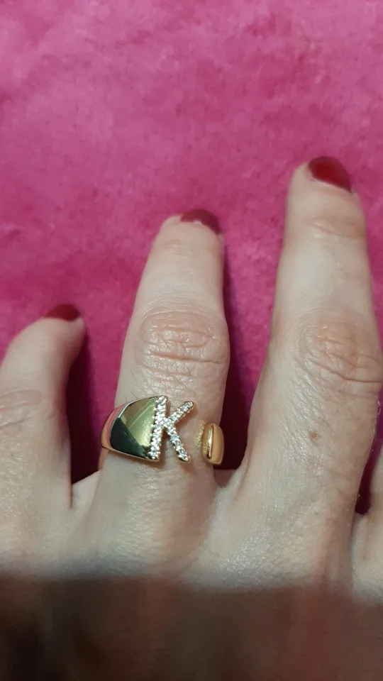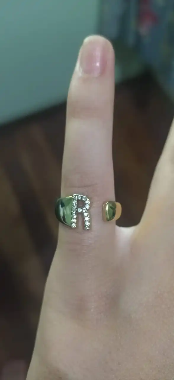 Anel com brilhantes, personalizado com a inicial do seu nome. O tamanho é totalmente ajustável e se adapta a todos os dedos.